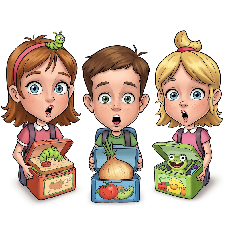 Er wartete, bis die Frühstückspause begann. Dann – zack – zauberte er blitzschnell alle Brotdosen der Kinder um.